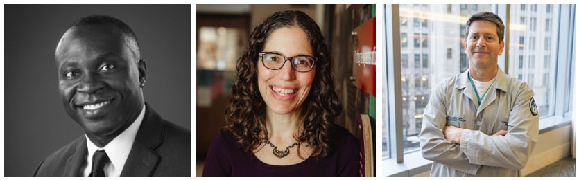 From left to right - Salomon Rodrigue, Doula and Co-Founder, Melanated Maternity Essentials; Dr Tova Walsh, Assistant Professor and Chair of the Doctoral Prog, UW Madison Sandra Rosenbaum School of Social Work; and Dr Craig Garfield, Professor of Pediatrics and Medical Social Science, Northwestern University & Laurie Childrens Hospital.